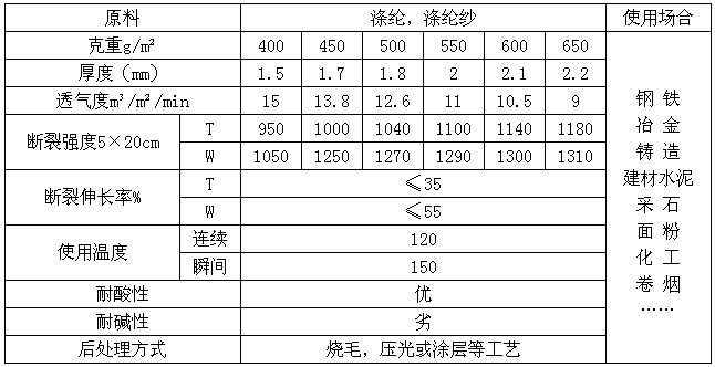 滌綸針刺過濾氈是制做常溫除塵布袋的理想材料,滌綸針刺氈采用中石化化生產(chǎn)的高標(biāo)準滌綸纖維,按照國標(biāo)GB12625-90標(biāo)準生產(chǎn),加工制作的過濾材料,為常溫過濾材料的主要品種。滌綸又稱聚酯,無論在干、濕性狀態(tài)下變化不大。它對絕大部分常溫中的氛圍提供良好的抵抗力。適應(yīng)場合: